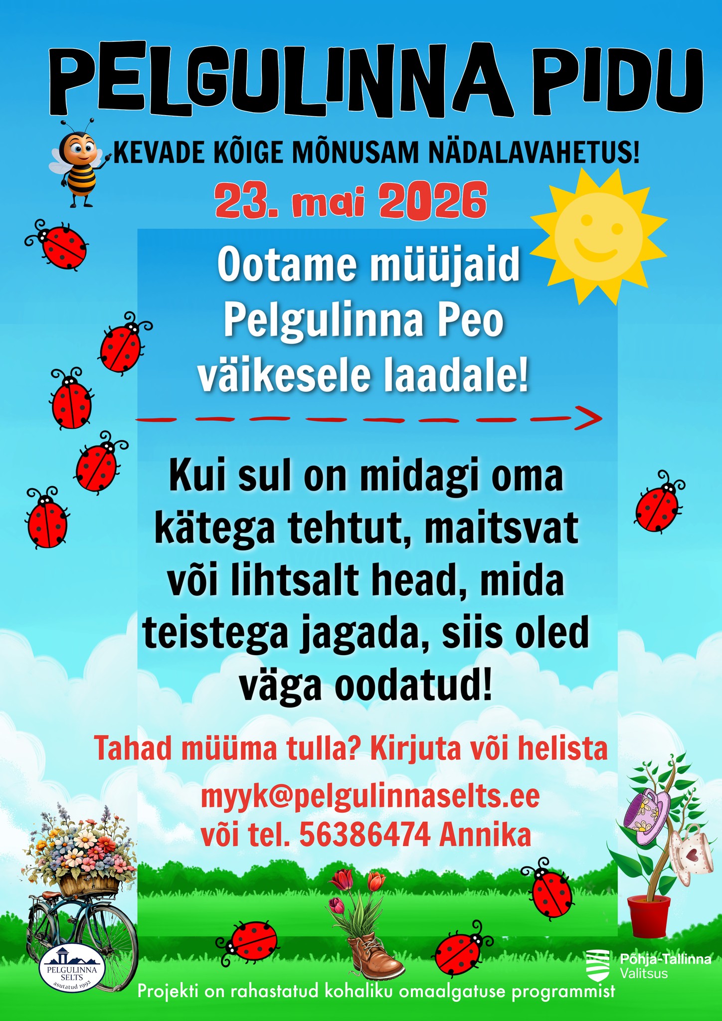 Ja kui tead kedagi, kes tahab tulla laadale kauplema, siis anna talle teada, et ta registreeriks end myyk@pelgulinnaselts.ee.